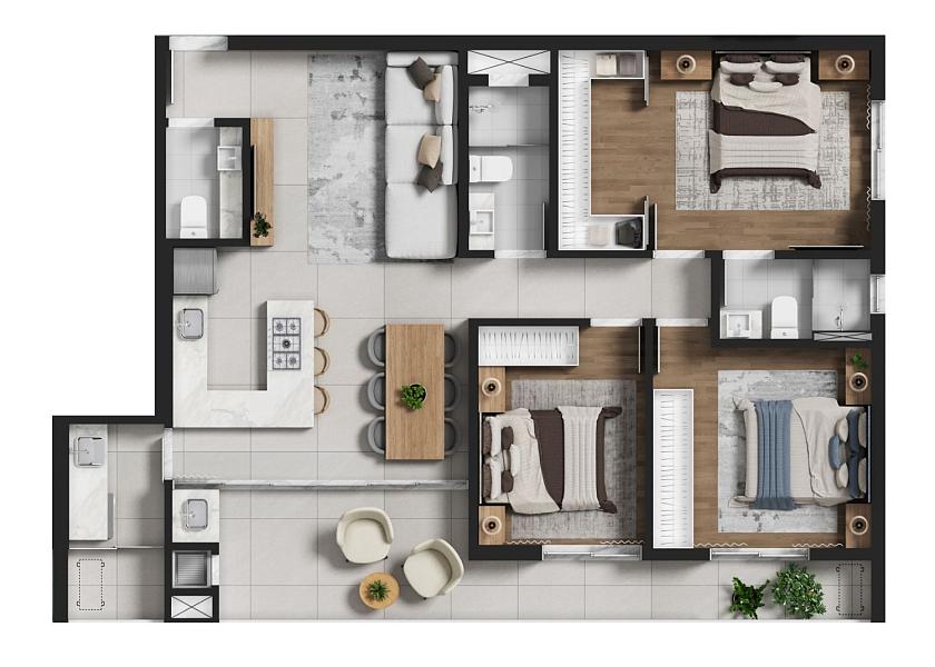 3 dormitórios (1 suíte)